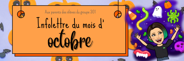 Dates importantes ce mois-ci 15 octobre: Remise de la première communication sur Mozaïk et sortie scolaire 15 octobre: Photographies scolaires et premier atelier avec une biologiste 31 octobre: Halloween |