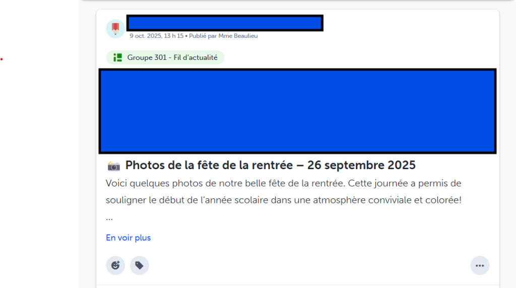 Espace Parents Messages et rappels Publication sur EspaceÉdu 9 octobre 2025 Lucie Beaulieu-Gauvreau EspacesÉdu, Photo, vie de classe La publication originale est sur EspaceÉdu sur le mur sécurisé. 🙂