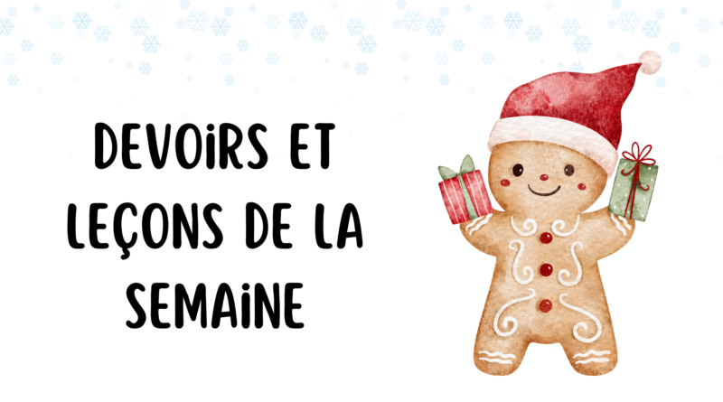 | * Je n’ai pas reçu tous les cartables d’évaluations. Merci de le renvoyer à l’école! * Mercredi 3 décembre: journée pédagogique * Jeudi 4 décembre: bibliothèque Salaberry * Vendredi 5 décembre : journée pyjama, collation spéciale et toutou! |